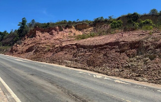 Um barranco localizado no trecho da BR-101, a cerca de 7 km da cidade de Itabela, ameaça deslizar, podendo causar uma tragédia. Na mesma região, já houve deslizamento de grande quantidade de terra após um forte temporal que atingiu o sul da Bahia.