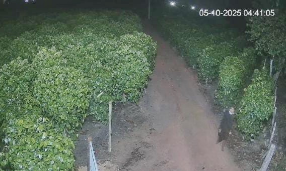 Uma câmera de segurança filmou o indivíduo as 4h41m, saindo de dentro de uma plantação e caminhado sentido a casa do trabalhador.