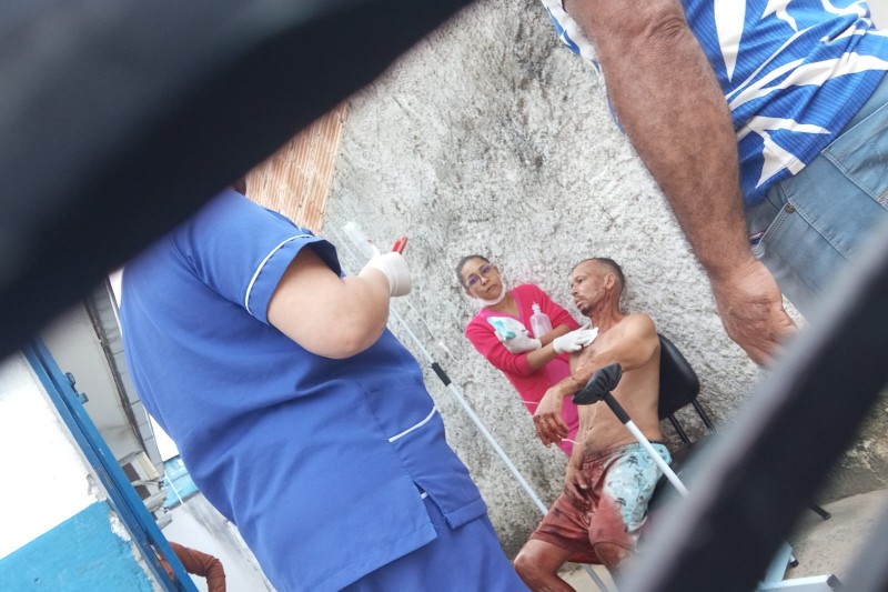 Com a ajuda de populares ele foi socorrido e levado até um posto de saúde do bairro e em seguida encaminhado para o Hospital Frei Ricardo de Itabela.