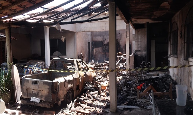 A parte atingida pelo incêndio fica fora da casa aonde fica guardado os artigos de festa e os veículos que foram destruídos. O prejuízo pode chegar há mais de cem mil reais.
