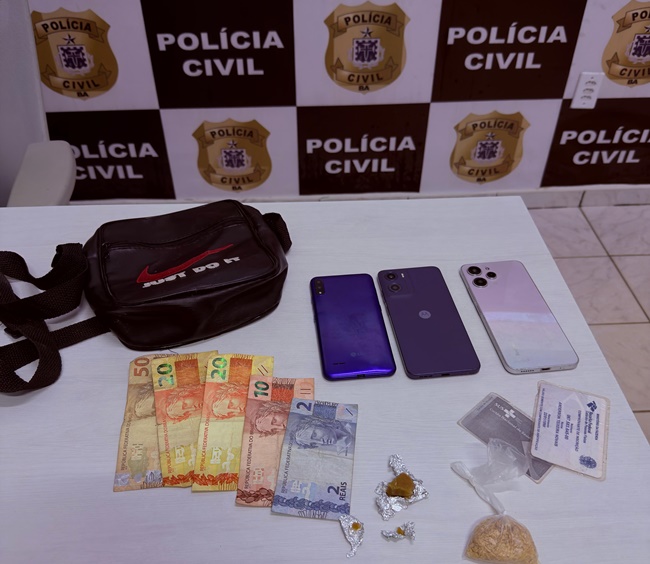 A Polícia Civil da Bahia, por meio da Delegacia Territorial de Itabela, prendeu em flagrante um homem suspeito de envolvimento com os crimes de receptação e tráfico ilícito de entorpecentes, durante diligência realizada no município.