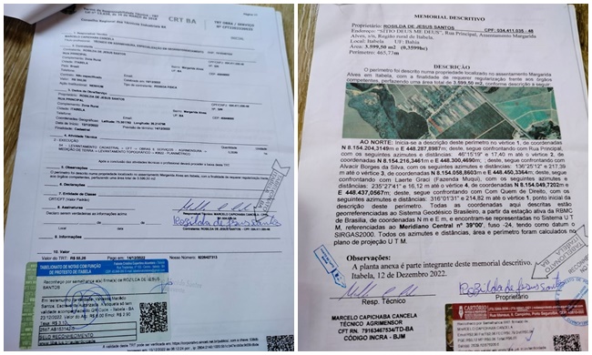 Rosilda apresentou documentos que, segundo ela, comprovam a legalidade da posse do lote.