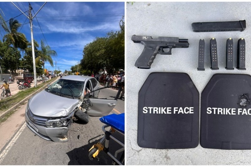 Durante a ação, os policiais apreenderam uma pistola calibre 9mm, carregadores, munições e placas balísticas utilizadas em coletes de proteção que estavam no interior do veículo.