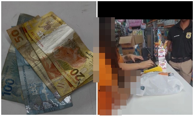 De acordo com informações da gerência, uma segunda pessoa também aparece nas filmagens subtraindo valores, mas não estava presente na loja no momento da ação policial.