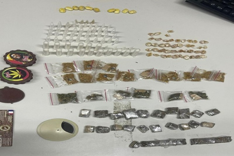 Após o acompanhamento e, mediante verbalização e ordens legais, os suspeitos se renderam. Durante a abordagem, foram encontrados com os indivíduos 64 pinos de cocaína, 29 buchas de maconha, 13 buchas de haxixe, 44 pedras de crack, 10 comprimidos de MD, além de 02 dichavadores.