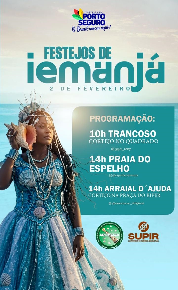 Iemanjá, a Rainha do Mar, segue como uma das devoções mais marcantes do calendário religioso e cultural de Porto Seguro. A celebração reúne 26 terreiros em uma poderosa manifestação de fé, ancestralidade e pertencimento, ocupando praias, ruas e espaços sagrados do município. No dia 2 de fevereiro, a cidade inteira entra no ritmo das homenagens, com cortejos, cantos, toques de atabaques e entregas simbólicas que reafirmam a força das matrizes africanas e o respeito às tradições que atravessam gerações, envolvendo moradores, visitantes, praticantes e admiradores.