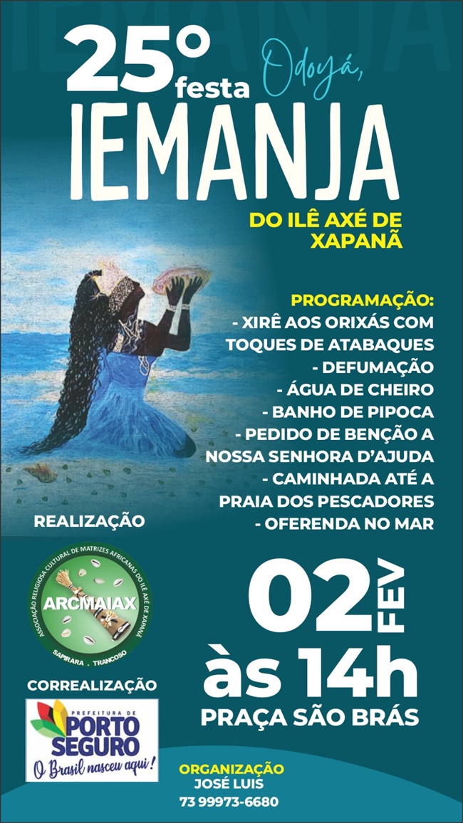 A festa mais tradicional acontece em Arraial d’Ajuda, que chega à sua 25ª edição com grande mobilização comunitária. O evento tem início na Praça São Brás e a expectativa é reunir mais de 4 mil pessoas, entre moradores e turistas, além da participação de mais de 40 baianas, em um grande encontro de celebração, identidade e resistência cultural.